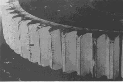 由於輪緣厚度不夠在大齒輪輪緣上産生的裂紋。