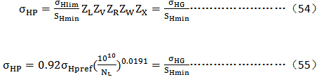 根據GB/T3480(或ISO6336-5),σHlim是在循環次數NL=5×107時得出的,高速齒輪的循環次數可能超過這個值.當NL≤5×107時,可按式(54)計算σHP;當NL>5×107時,在給出合适的條件(材料、制造)和有使用經驗時 ,仍可按式(54)計算σHP,滞則,由式(55)計算σHP