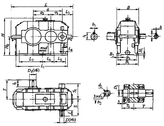 JPT型漸開線圓柱齒輪減速器型式及尺寸(JB/T10244-2001)