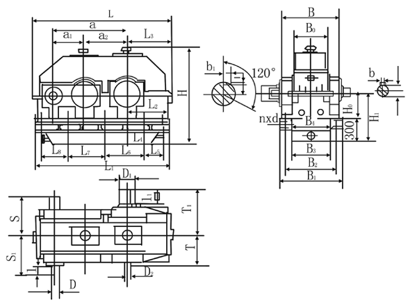 KPTH型漸開線圓柱齒輪減速器外形及安裝尺寸(JB/T10243-2001)