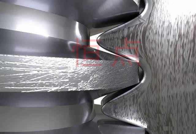 螺旋齒輪(交叉斜齒輪),它們的運動以楔形或螺旋爲主,齒面高度滑動,易於裝配,具有相同的法向徑槽,它們可以朝同一個方向 ,也可以朝相反的方向。
