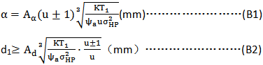 在初步設計齒(chǐ)輪時,根據齒(chǐ)面接觸(chù)強度,可按下列公式之一估算齒(chǐ)輪傳動的尺寸 :