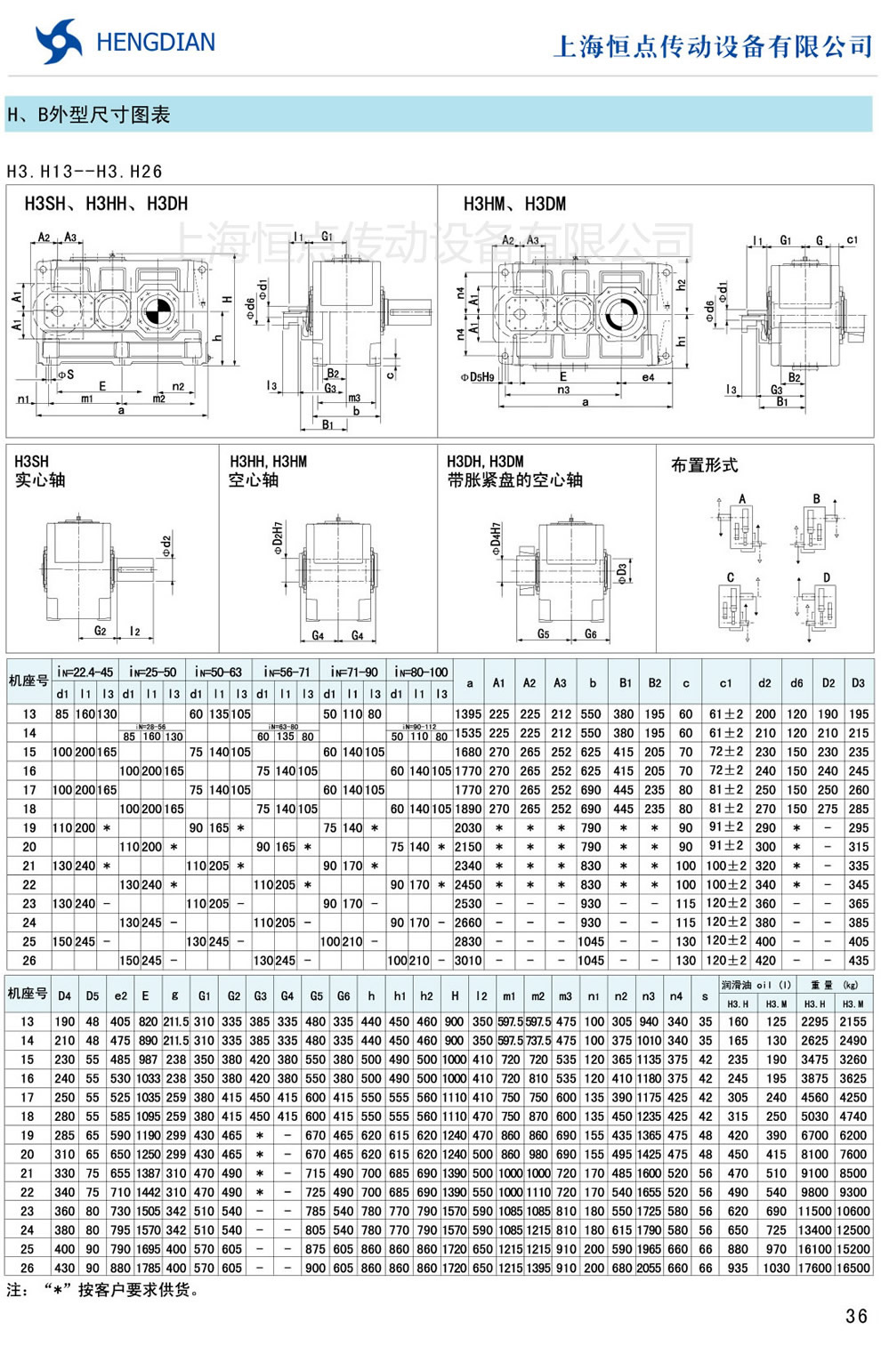 13 - HB系列外形尺寸(2) 14 - HB系列軸布置形式