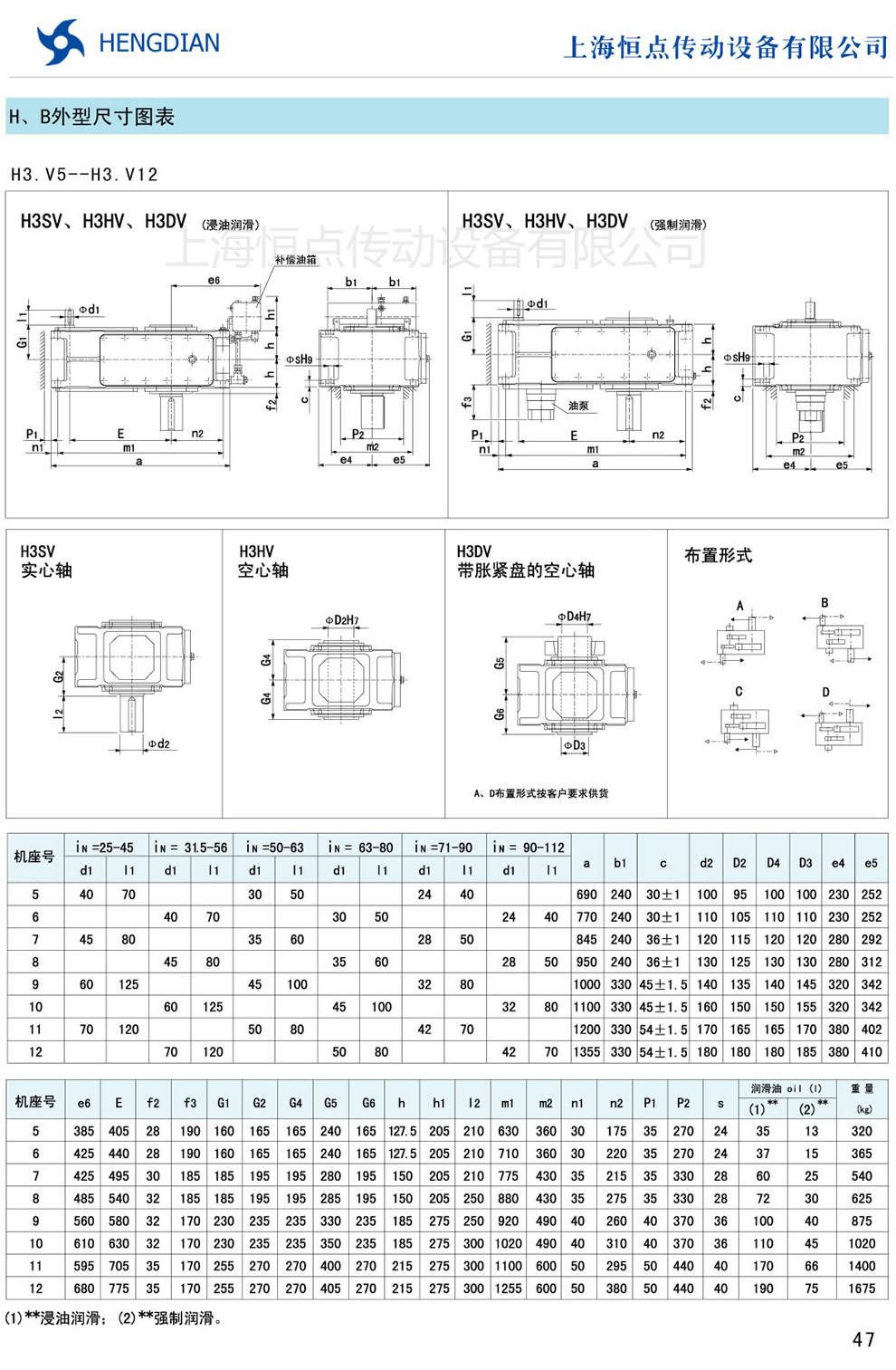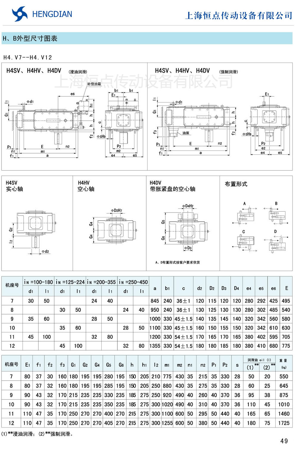 HB标準工業齒輪箱 詳細選型參數及尺寸參數: