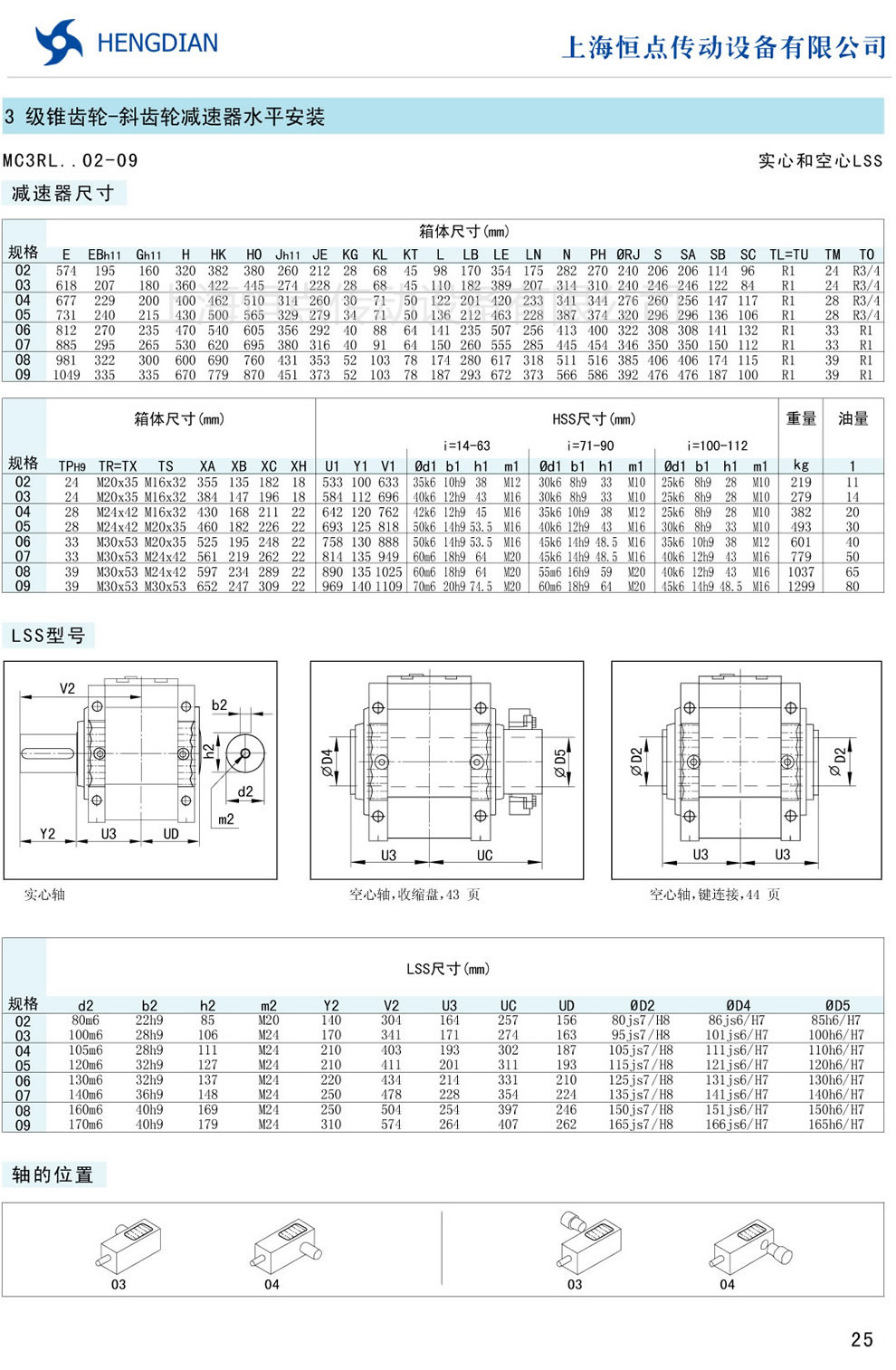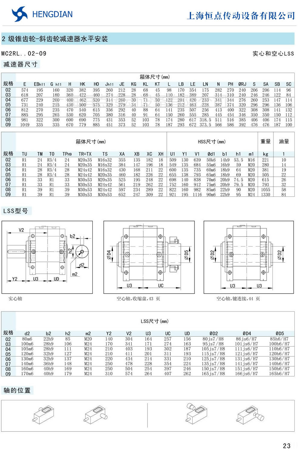 MC硬齒面減速器 詳細選型參數及尺寸參數: